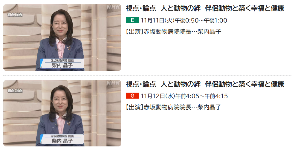 当院院長の柴内晶子が、NHK「視点・論点」に出演いたしました。
